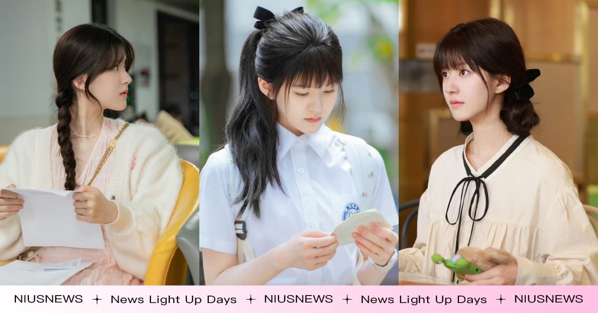 直接被封為「最軟萌」造型!雙馬尾已不夠看,趙露思在高中時期出現的雙折麻花辮,搭配上蓬鬆的瀏海,完全是「甜妹天花板」,將頭髮綁上雙麻花辮,再反折以蝴蝶結固定,完美詮釋小桑稚的靈動可愛。