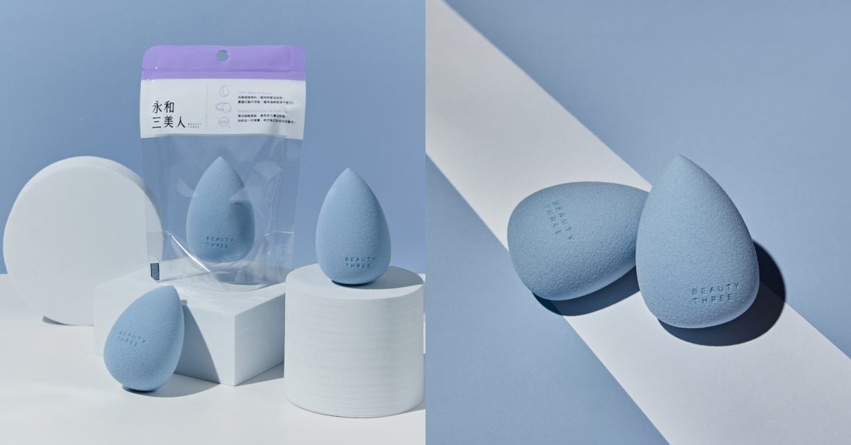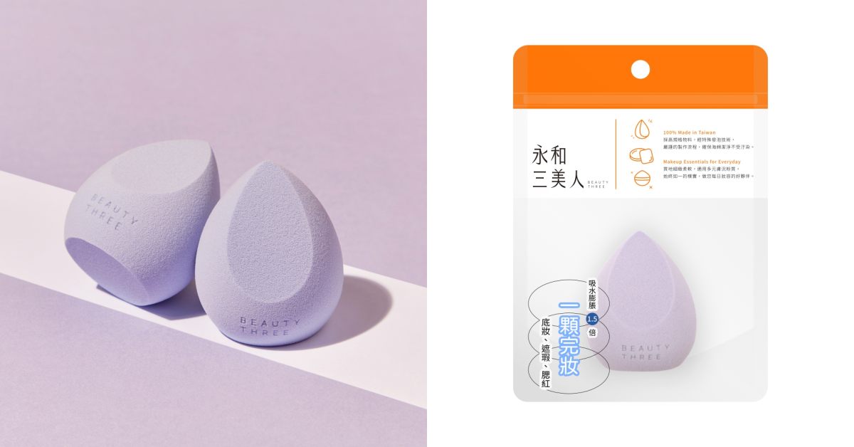 講到台灣自產好用又便宜的化妝工具,絕對要提到永和三美人啊!除了專業彩妝師也狂推的海綿,今年終於推出敲碗已久的美妝蛋了,特別針對台灣濕熱氣候研發,共推出3款美妝蛋,各自呈現不同的柔軟度、彈性與切面。「水色水滴形美妝蛋」是經典的水滴型造型,泡水後會膨脹 1.5 倍大,呈現蓬鬆柔軟手感,可同時保有遮瑕度,卻不過於厚重的底妝,新手可以很好駕馭的一款工具。