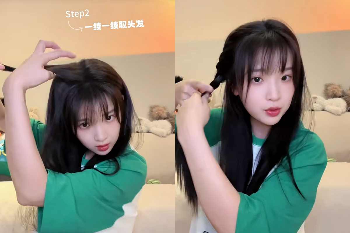 最後將辮子和下方的頭髮,以橡皮筋固定住,這樣頭髮兩側就會是辮子的造型,下面則是雙馬尾,非常顯活潑可愛。想看動態版教學,可以到張淼怡的小紅書上邊看邊跟著做喔!
