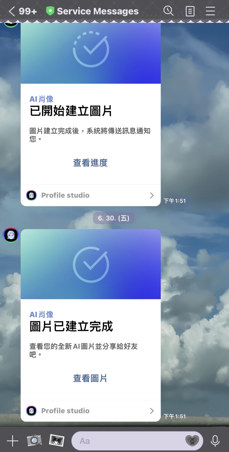 現在很多人都會在 instagram 分享自己的 AI 圖片,小編也使用 「AI肖像」來製作了小編的 AI 圖片。首先先選擇 10~20 張正面或側面,五官清晰、不能 wink 的圖片。接著選擇照片方案,總共有兩種方案。想馬上知道的可以選擇快速生成30張照片的方案,售價為 340 枚 LINE 代幣。或者 24 小時內生成 30 張照片的方案,售價為 170 枚LINE代幣。製作完的照片會出現在「Service Messages」,可以一鍵下載 30 張照片,用來當頭貼或發文都是可以的: