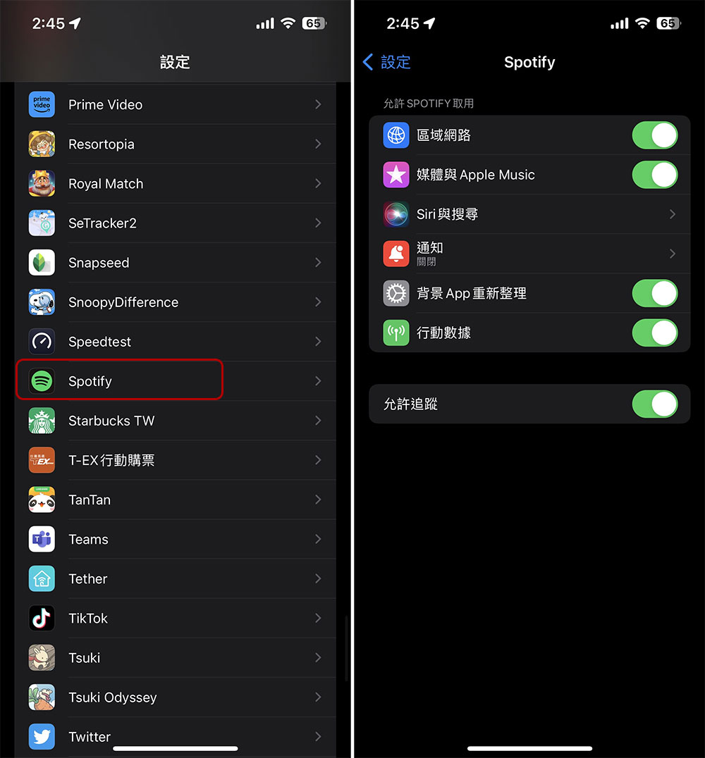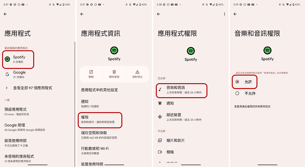 方法 2:在手機上檢查 Spotify 的應用程式許可權