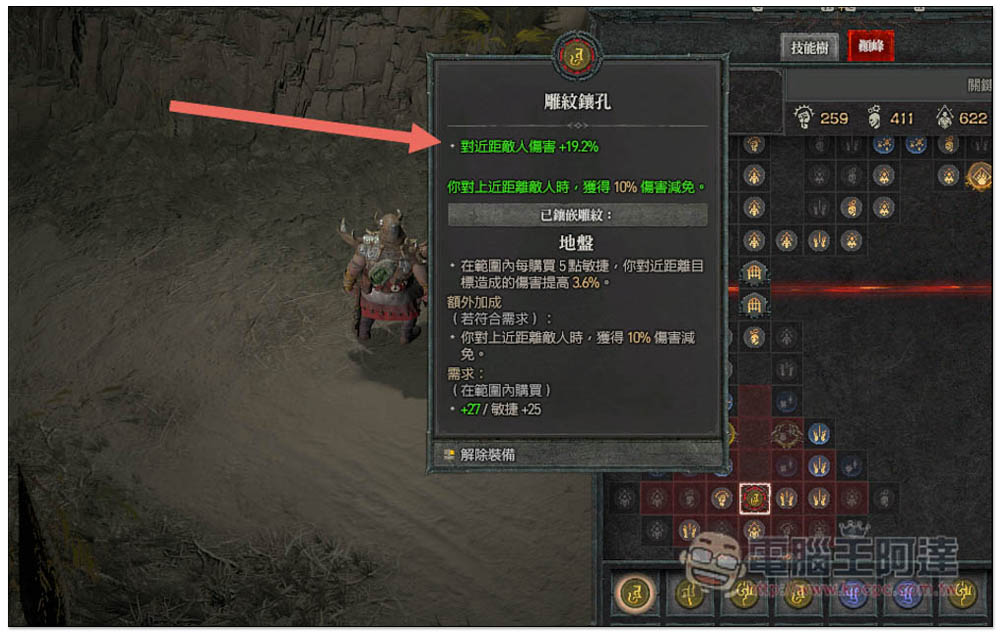 另外我的攻擊都是近距離,因此這個鑲孔的 19.2 應該也要算: