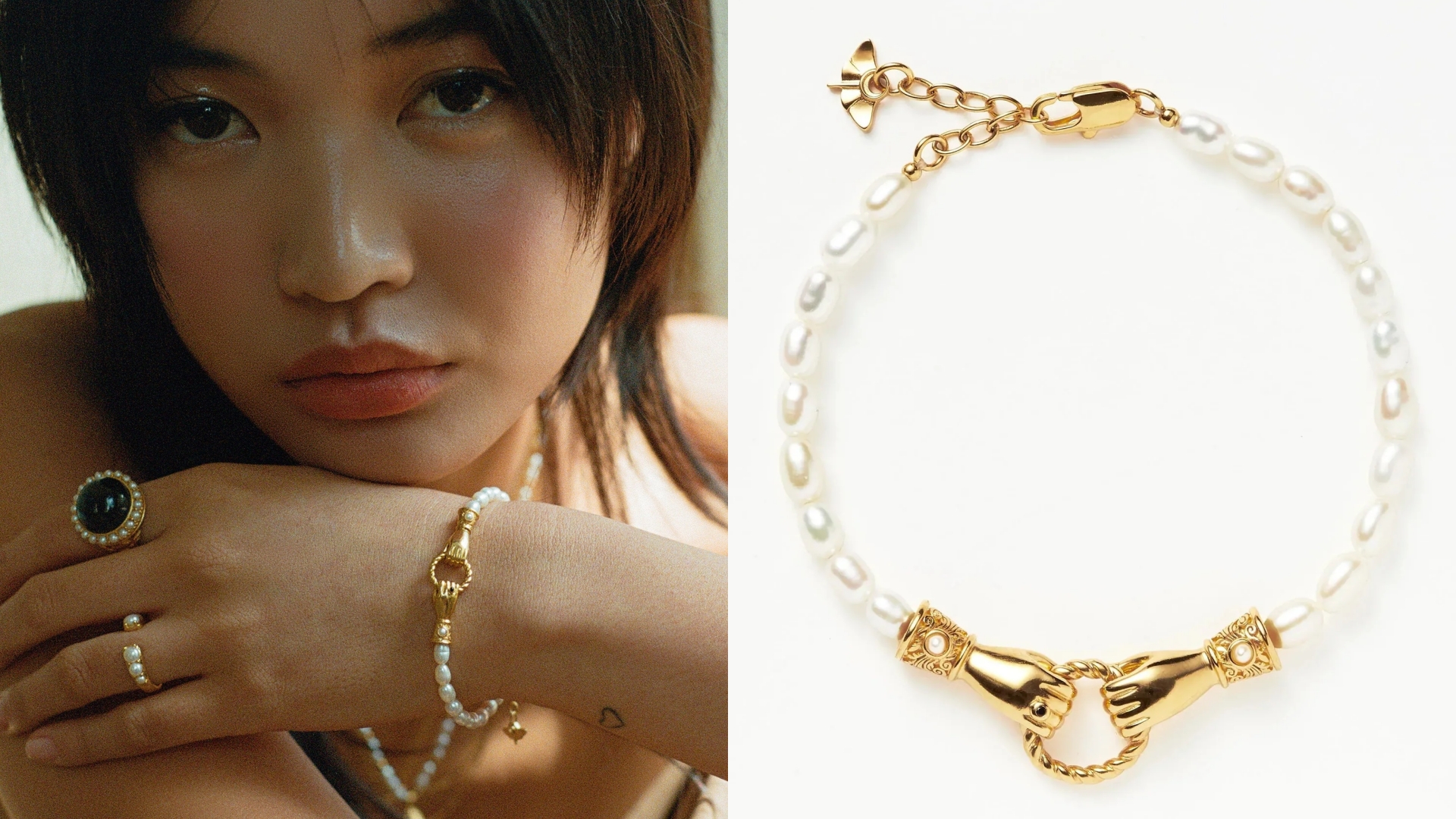 深受歐美名人喜愛的倫敦品牌 Missoma,以時尚卻不失精緻細節的設計,讓女孩們每次點進官網都會失心瘋。今天推薦的這款珍珠手鍊,是品牌與法國設計師 Harris Reed 的聯名設計,整體帶有古歐洲的風格,近看會發現,手鍊扣頭竟然是兩隻小手!如此精妙又可愛的細節,再次迷倒了一票粉絲!