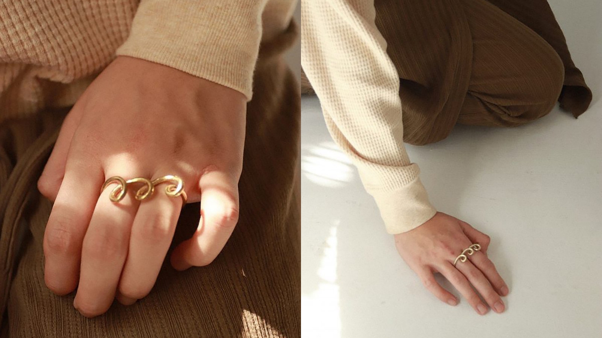 台灣個人首飾工作室 Cyco,所有款式皆由設計師手工打造,每件作品都是獨一無二的。捲的線黃銅戒指以三個小圓圈的俏皮造型呈現,讓人聯想到可頌麵包或是可愛雲朵,兩指套入的設計,為其再添獨特個性,如此難得一見的設計,是質感的你一定要擁有的寶藏單品!