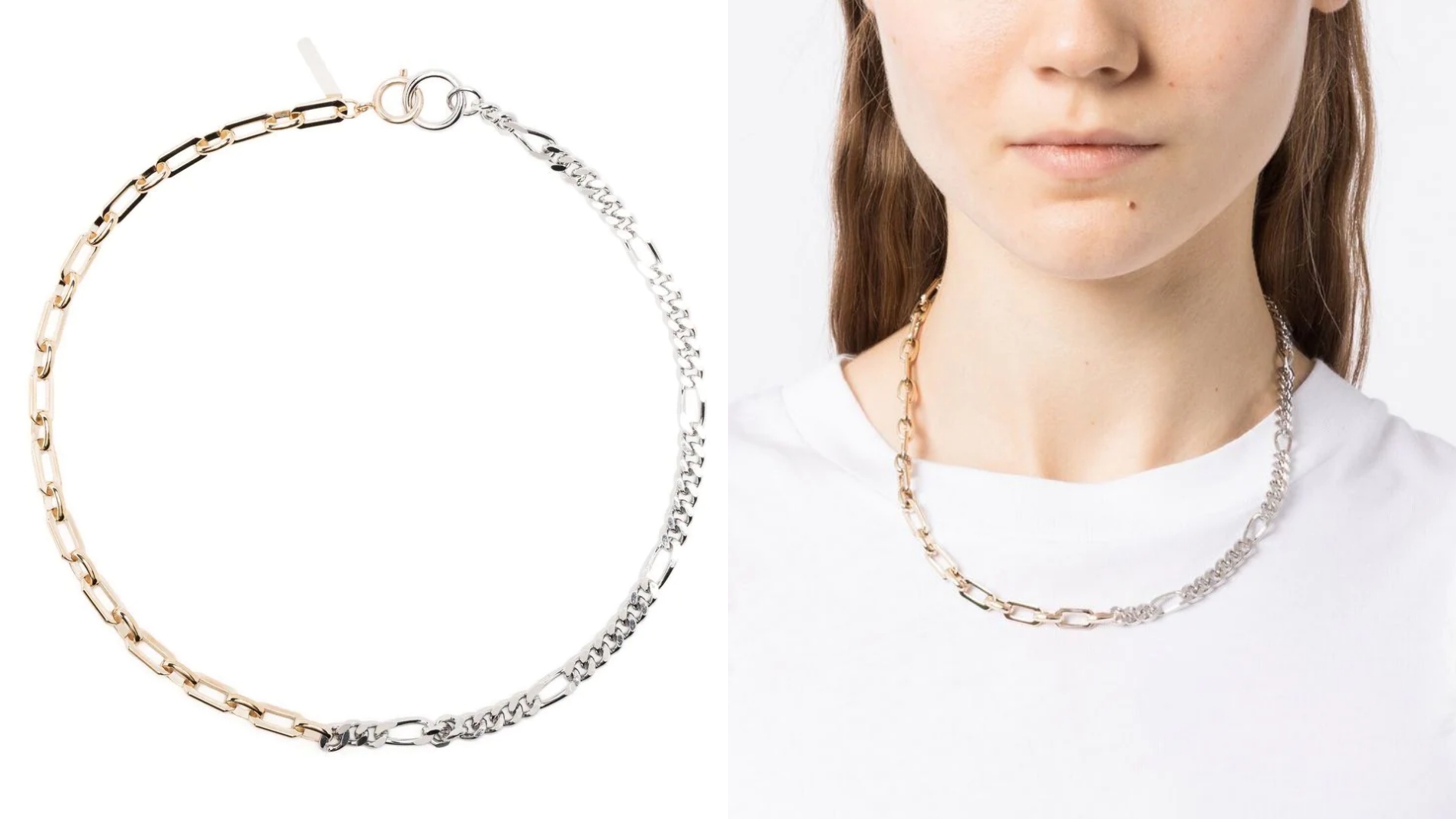 被 Lady Gaga、Charli XCX 等名人私藏的法國小眾品牌 Justine Clenquet,其獨樹一格的魅力,深得許多潮男潮女的喜愛,像是這款異拼接項鍊,將不同元素完美融合,就連金屬鏈也透過不同粗細組合做出變化,讓你的頸上永遠不無聊,是將穿搭提升一個層次的精彩配件!