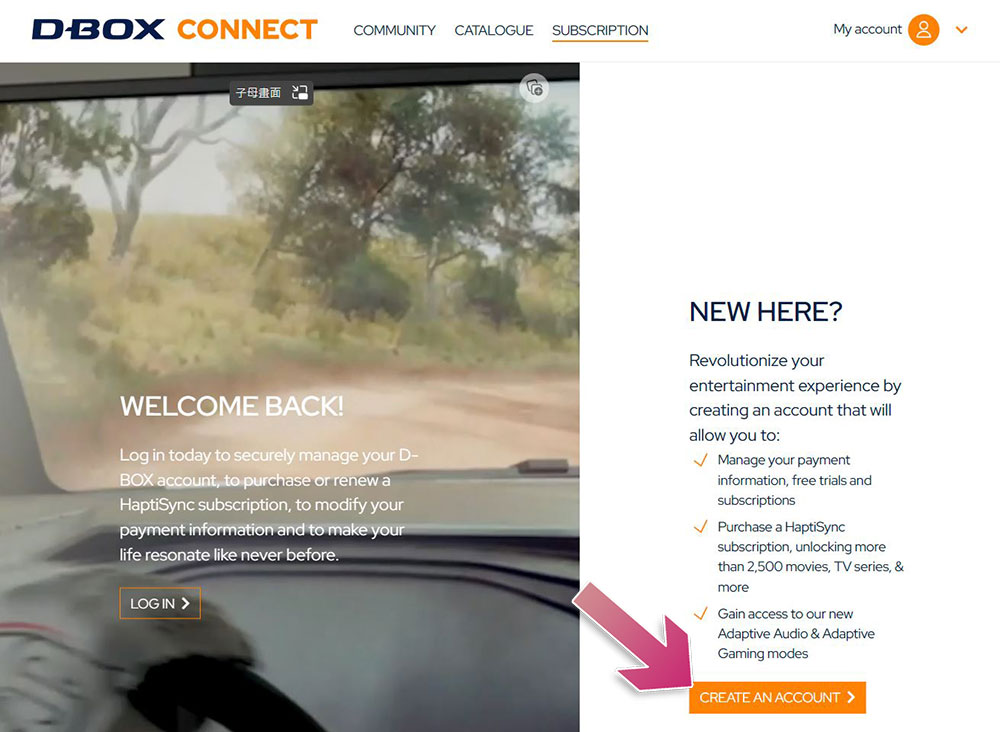 接下來你就可以到官方網站註冊 D-BOX Connect 帳號來安裝並更新 D-BOX 遊戲與影音庫所需要的體感編程檔案,同時也可以在這裡兌換購買 Motion 1 時贈送的終身訂閱促銷碼。