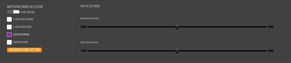 切換到 Adaptive Audio 模式下,還可以對應任何遊戲、電影、電視劇、音訊提供通用的體感體驗,不限定是否來自 D-BOX或特定平台。