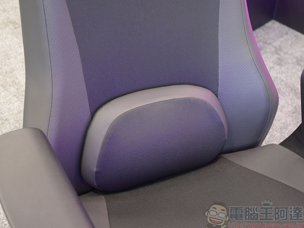 有時候一坐下來玩個遊戲、看個電影,不知不覺間 2 小時就過去了,尤其是台灣的天氣好熱,常常是屁股三把火在燒一般熱滾滾。為了讓使用者久坐更舒適、不悶熱,椅面採用透氣性佳的 Cooling 涼感布,觸感細緻,但更耐磨損。搭配 PU 皮革的異材質結合,在同色中發揮不同材質的特色,呈現更精緻的質感。