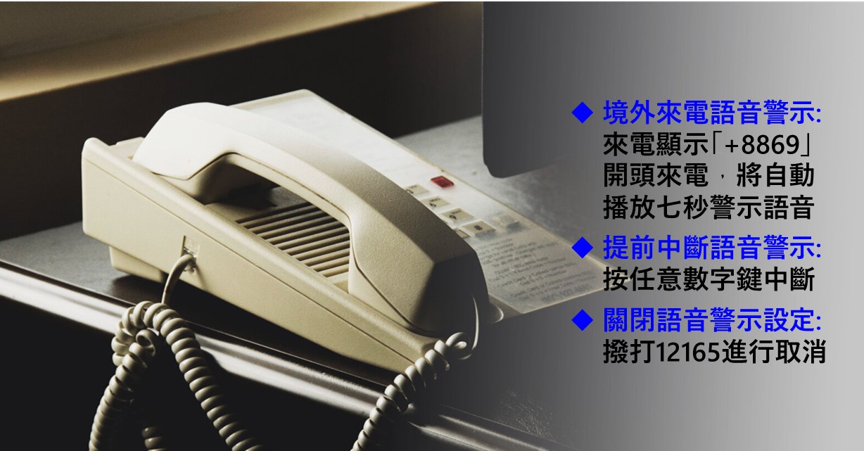若民眾要中斷語音警示,受話者可按任意數字鍵中斷警示音進入通話:若要取消設定語音警示,則受話者可撥打12165進行取消警示語音。