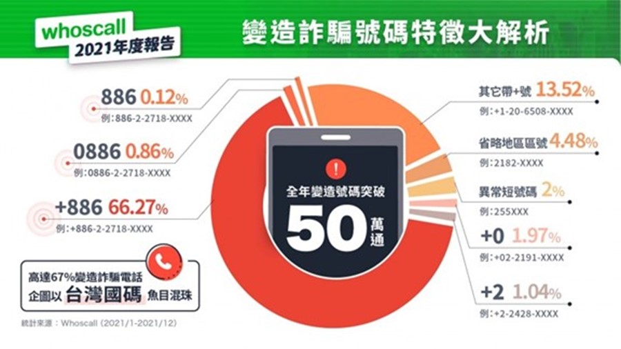 由於詐騙集團經常利用電信技術漏洞,透過二類電信業者的國際節費器並使用某些境外伺服器的非法VOIP(網路電話)軟體平臺就可以發送竄改的來電顯示的電話號碼。根據WHOSECALL的統計,台灣過去許多詐騙電話多數都是以+886開頭電話,為防止詐騙集團利用竄改來電顯示訛詐及讓民眾清楚辨識是否接到國際電話,2010年10月NCC修訂了「電信事業網路互連管理辦法」,取消所有電信業者國內電話來電時顯示「+886」字樣,只有在真正接獲國際電話時,來電顯示才會出現。