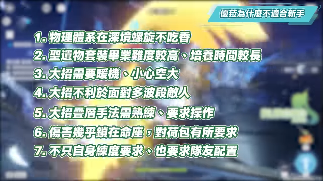 Q1:優菈為什麼不適合新手?