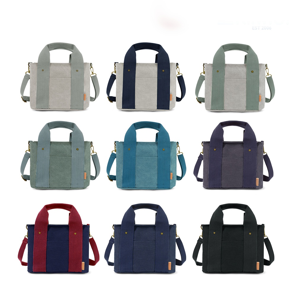 多隔層厚磅帆布選用高品質的帆布料,內裡分五個不同的大小隔層,方便根據需求調整物品的擺放位置,最外層則設置拉鍊,讓內部物品不會輕易露出。除了能手提,還可以斜背/側背、斜跨肩/單肩斜背、肩背等各式背法方便搭配。