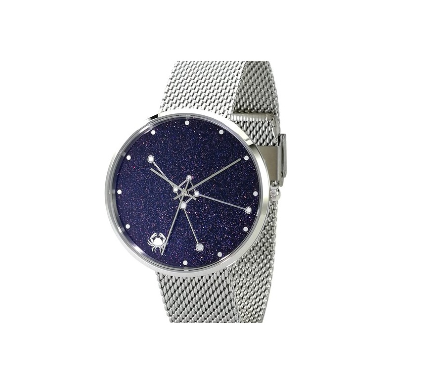 星座圖騰表達出其代表的涵義並帶出能量。錶面的設計以整個星光閃閃的星空當底,並以星點當時間點。不鏽鋼的錶殼以及錶帶搭配日本的機芯,能30米防水,在水面下也能透出一點光芒,就像天上的星星在指引你。