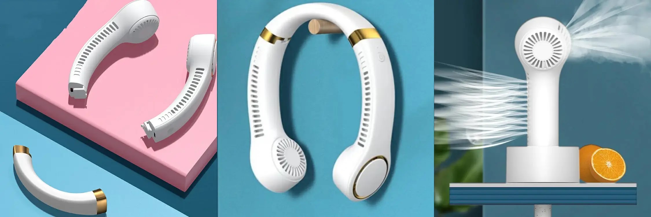以往在夏天的時候,人人一支陽傘遮擋艷陽,現在一手拿陽傘,一手拿風扇的人越來越多了,因為近年夏季的太陽已經不是陽傘能抵擋的了。但兩手都拿東西,就沒辦法拿飲料了,所以現在有推出很多種掛在脖子上的風扇,走在路上就能輕鬆享受涼風,而且這款風扇還可以當作桌上的小電扇使用,畢竟很多小資族會為了省電而選擇不開冷氣,這時候近距離的小風扇就很適合拿來降溫。