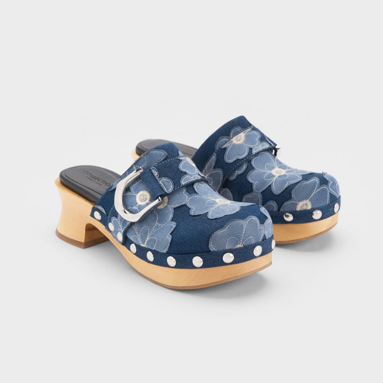 NewJeans除了在MV中有穿到小CK,團員Hanni更在粉絲見面會上的花絮影片中,穿上了深藍色單寧的鉚釘木屐鞋,圓圓胖胖的鞋頭搭配上木頭鞋底,為整體的造型增加小亮點!(價格:NT$3,990)