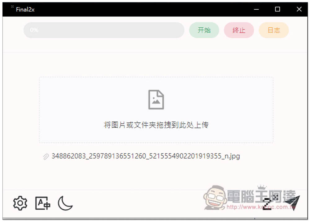 像這樣。使用方式也很簡單,就把你要放大的圖片拖曳進視窗,提供批次處理,也就是你可以一次拖曳多張圖片進來: