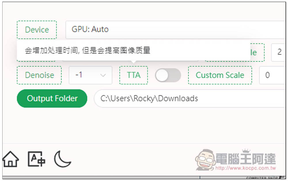 TTA 是提升圖片品質的功能,但會增加處理時間,建議放大後覺得不滿意再打開: