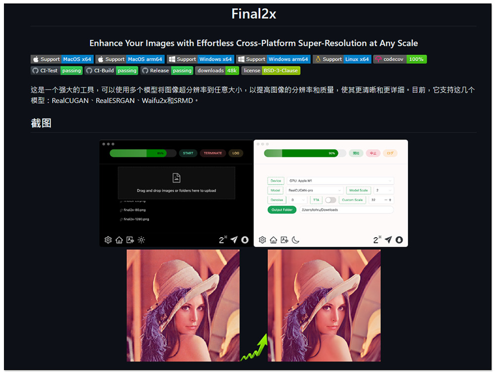 Final2x 免費開源圖片解析度無損放大軟體,效果超讚、支援 CPU 和 GPU、多種模型