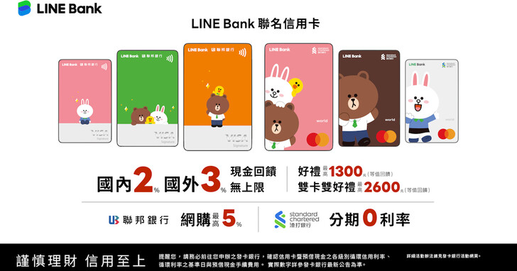 【渣打LINE Bank聯名卡 – 單筆滿千元享6期零利率】 單筆滿千元,享不限次數6期0利率, |
