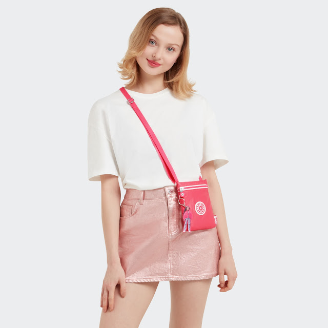 1.可愛指數爆棚:Kipling x Barbie-俏麗芭比粉拉鍊斜背包-AFIA