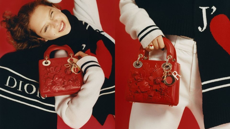 Dior推出了DiorAmour特別系列~利用可愛的鮮紅愛心、及文字遊戲來襯托多款服飾,包括經典Book托特包、Lady Dior包款和皮夾~作品中大大的紅色調愛心,形容其為「生命的顏色」,展現出迪奧先生幸運圖騰—愛心的華麗樸實,其中若隱若現的法語Je T’aime(我愛你),也為包包點綴了不少浪漫~