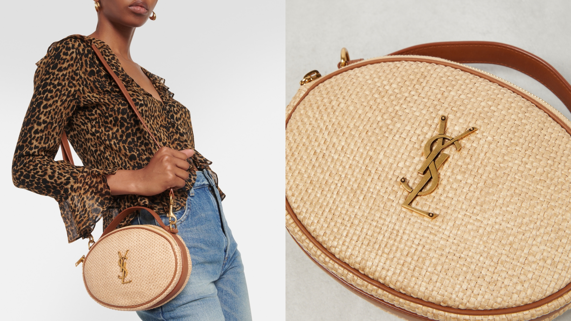設計精品包推薦 2:SAINT LAURENT Leather-trimmed raffia-effect shoulder bag