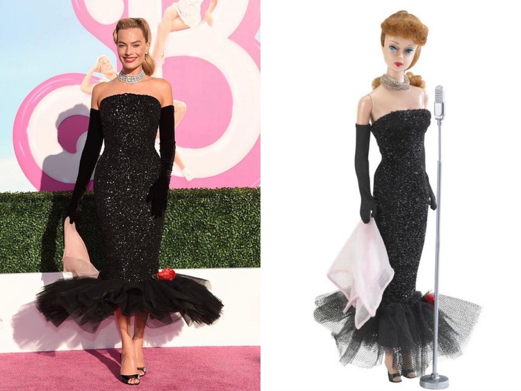 本來以為瑪格羅比的浮誇程度已經無法超越,沒想到她又於上週在洛杉磯全球電影首映會上超越自我!為了致敬 1960 年的「Solo in the Spotlight」芭比,她換上了來自義大利高訂品牌 Schiaparelli 為她訂做的全黑魚尾亮片禮服,合身禮服完美展現她的好身材,加上 Lorraine Schwartz 的鑽石項鍊、手套與絲巾的點綴,浮誇與優雅、甜美與個性一次展現!