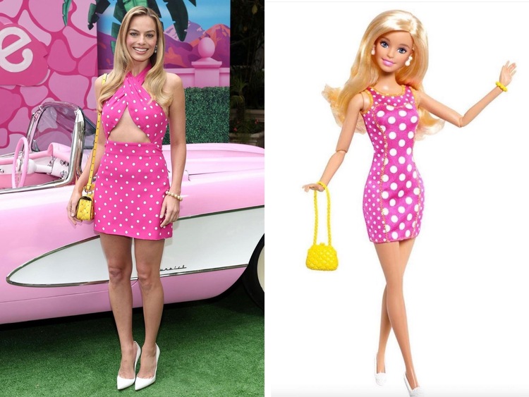 接著,瑪格羅比到洛杉磯宣傳《芭比》時,則選擇致敬 2015 年發行的「Pink & Fabulous」芭比,換上了 Valentino 為她訂製的波卡圓點短洋裝,手拿 Manolo Blahnik 手提包,亮黃色包款與桃紅色的洋裝撞色搭配,讓整體造型多了一絲叛逆的衝突感,唯一不變的是她的好身材與像太陽一樣的燦笑,光看就讓人心情大好。