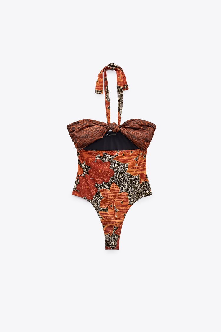 你的度假旅行行李箱中絕對少不了這款,有著熱帶風情的印花的連身泳裝。繞頸吊帶設計,所有穿上它的女孩能巧妙露出完美好身材,還有鏤空、扭結兩個元素,讓泳衣穿起來也可以擁有充滿細節的時髦感!(官網建議售價:NT$ 1,390。)