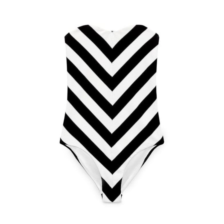 來自Zara新推出的電影《Barbie 芭比》聯名系列,這件經典的黑白泳裝讓人一秒回到60年代!V字條紋的設計不僅格外吸睛,視覺上也會更加顯瘦。準備好這個夏天穿上它,參加一場芭比Dress Code泳池派對吧!(官網建議售價:NT$ 1,790。)