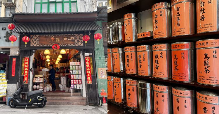 提到伴手禮就不能錯過經典茶葉禮盒,這家「華聯茶葉公司」一開始我是在小紅書看到很多人推薦必買的伴手禮,問了在地人才知道,他們是經營超過50年澳門相當知名的茶業出口商。同樣位在十月初五街附近,剛好買完喜臨門的蝦子麵下一個巷口就來到他們家,還沒走到門口就已經茶香撲鼻。