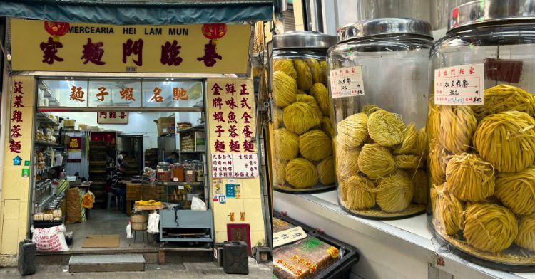 跟著澳門人吃一天就知道,他們對麵食有多麼的狂熱,早上是米粉、中午一碗蝦子麵、晚上帶你吃炒河粉,消夜時間又若無其事地拿出了一包公仔麵。所以當我問到有什麼推薦的伴手禮,他就把我帶到這家位於十月初五街附近的老字號麵店,開業於1958年的老店,專賣各種手作麵食,招牌的蝦子麵是家家戶戶都必備的主食,有點像台灣每個人家裡都有的關廟麵那樣的存在。