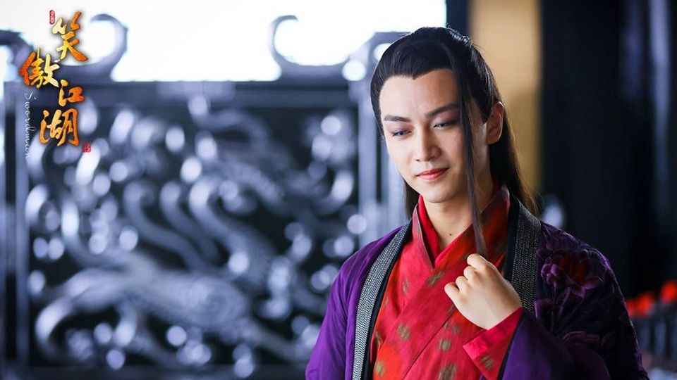 《笑傲江湖》另一位超濃煙燻妝就是陳曉飾演的林平之,一樣很媚,這妝感覺比女角還濃,那唇色也太粉嫩了吧!