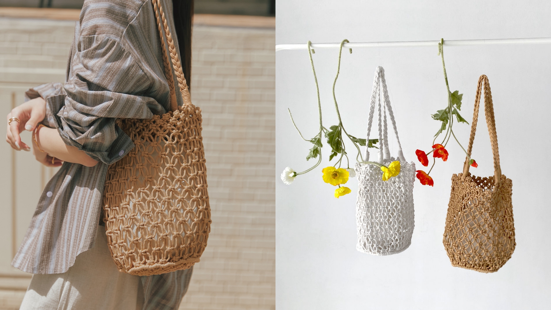 韓國質感品牌 common unique 的網狀編織包,略帶圓筒狀的包型,為你增添穿戴時的立體感,附有可拆式縮口內袋,不怕包內小物掉出,亦可將內袋單獨使用。可肩背也可手提的設計,讓你輕鬆融入日常穿搭,穿出夏日限定的清爽透視感!