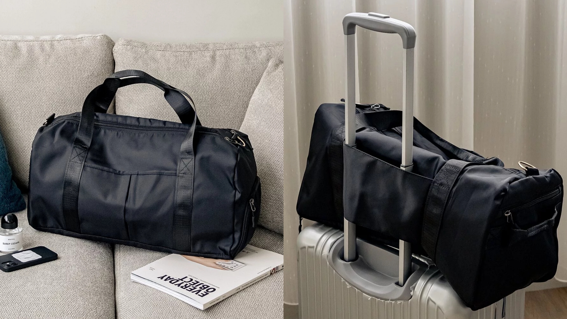 為外出遠行設計的旅行袋,主袋區以乾濕分離的防水材質製作,可直接放入盥洗用品、泳衣、髒衣服,不用另外裝塑膠袋,方便又環保。側邊設有獨立鞋位,就算帶兩雙鞋出門也有足夠的收納空間。可調節背帶設計,肩背、手提都適用,還能固定在行李箱手桿上,是款外型與機能皆近乎完美的包包!