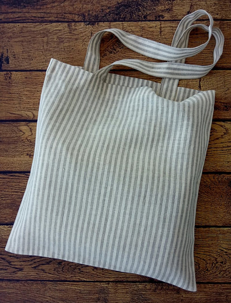 亞麻布購物袋推薦2.AnchEcoLife 條紋亞麻購物袋
