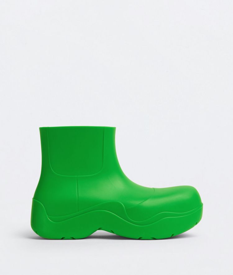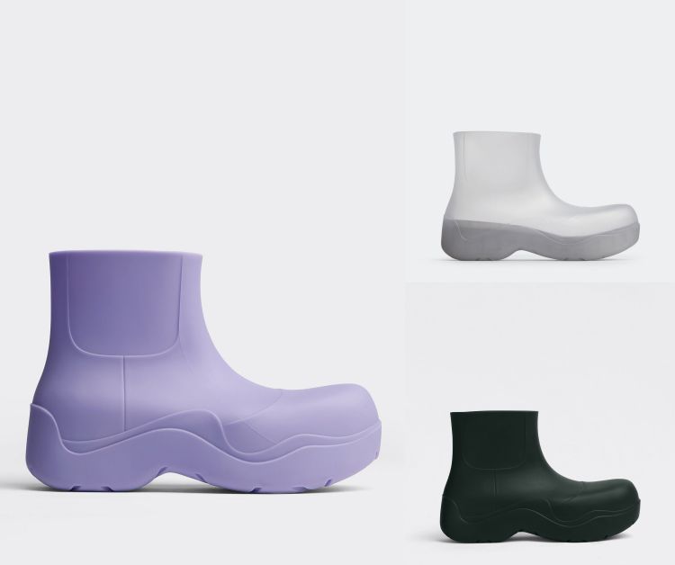 在2020 年秋冬秀場上初登場的「Puddle」,無疑是 Bottega Veneta 的代表作之一,其帶有未來感的厚底設計,搭配上廓形誇張的楦頭,讓胎鞋履不管是皮革款還是橡膠系列都深受許多時髦女孩的喜愛,在今年春夏,品牌「Puddle」系列膠鞋推出了更多種的配色,從經典的 BV 綠、暖白色到黑色應有盡有,其中最受注目的為全透明的款式,透過不同的襪款搭配,可展現其鞋履多變的造型。(商品售價:NTD24,800)