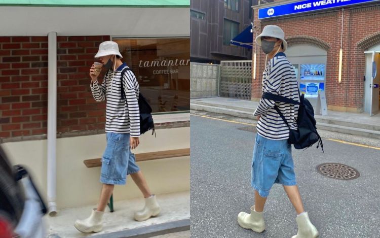 Bottega Veneta 身為近年來精品界的時髦指標,品牌所推出的單品早已征服許多名人的衣帽間,男團 EXO 成員金鍾仁 Kai ,在過去曬出的穿搭照中,便曾運用休閒的條紋 Polo 衫、六分褲及漁夫帽搭配 Bottega Veneta 最具代表性的橡膠雨靴「Puddle」,其厚底的設計搭配上具有份量的廓形,讓整體穿搭變得更有造型感!
