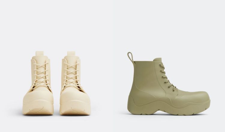 除了有基本的筒靴款式外,Bottega Veneta 的「Puddle」系列靴款亦推出加上鞋帶的版本,鞋身加入了鞋舌及繫帶的設計,讓整體擁有一種軍靴的率性感,鞋身上妝點的拼線條設計,更增添其鞋履的層次造型感,在配色上品牌則推出了卡其綠及暖白兩款色彩,其百搭的色系更增添其實用性。(商品售價:NTD28,400 )