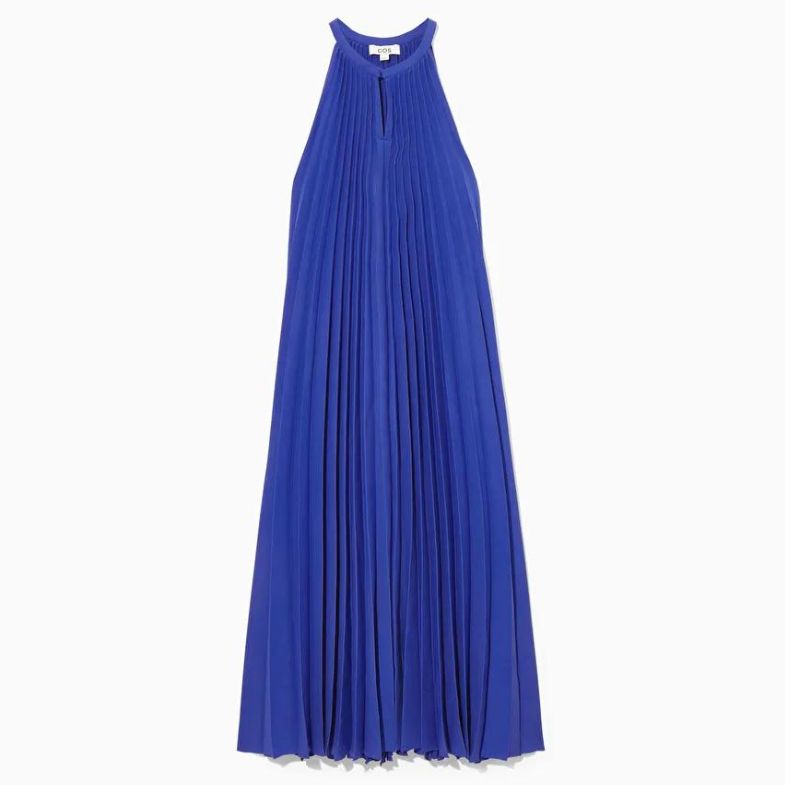 今年春夏推出的新品洋裝在門市的詢問度超高!光是單穿就有足夠的設計感,顯白的鈷藍色能讓你在人群中一眼跳出來!帶有獨特光澤感的布料製成百摺紋,格外閃閃動人,展示出精緻又獨特的時髦感。(官網建議售價:NT$5,000。)