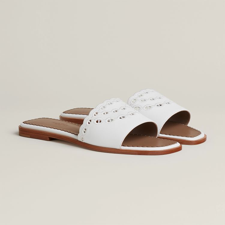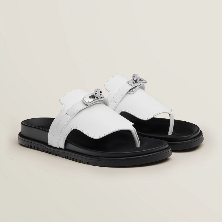 這款「Empire」涼鞋已經可以預測它將是 Hermès 下一款的秒殺鞋款!除了孫芸芸搶先曬出外,回到設計上,其鞋底符合足弓的弧度,搭配上鞋面上凱莉包扣的點綴,加上運用小牛皮為才的面料,整體精緻感十足的外型那個女人能不愛?(商品售價:NTD33,700)