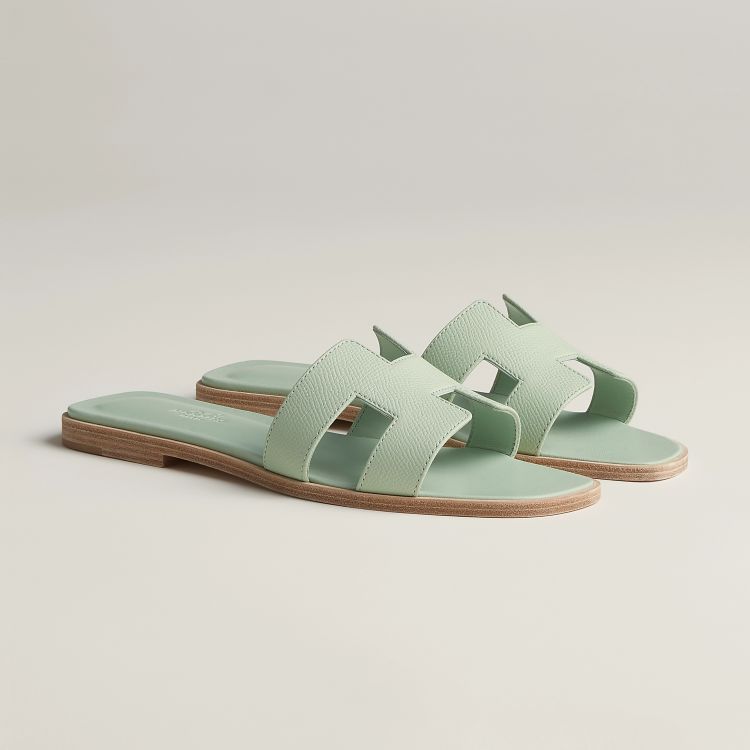 低飽和度的配色總能給人一種優雅的氣質感!這雙「Oasis」低跟涼鞋運用霧灰藍為配色,加上品牌標誌性的 Epsom 小牛皮的運用,搭配上「H」字樣鞋面,其優雅與休閒兼具的設計,不管搭配洋裝還是牛仔褲都很適合。(商品售價:NTD24,200)