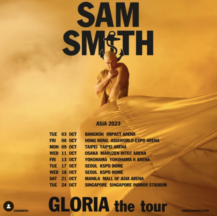 英國靈魂歌手山姆史密斯(Sam Smith)出道至今以〈Stay With Me〉、〈La La La〉、〈I'm Not The Only One〉等熱門單曲都受到熱烈的回響,並紅遍全球,除了毋庸置疑的歌唱實力,他還兼具優秀的創作才華,曾榮獲多項音樂大獎,而他也在個人社群上曬出亞洲巡迴的場次,包括曼谷、香港、日本、首爾等等,其中第3站的台灣將會於10月9日在台北小巨蛋舉行巡迴演唱會,令台灣歌迷終興奮不已!