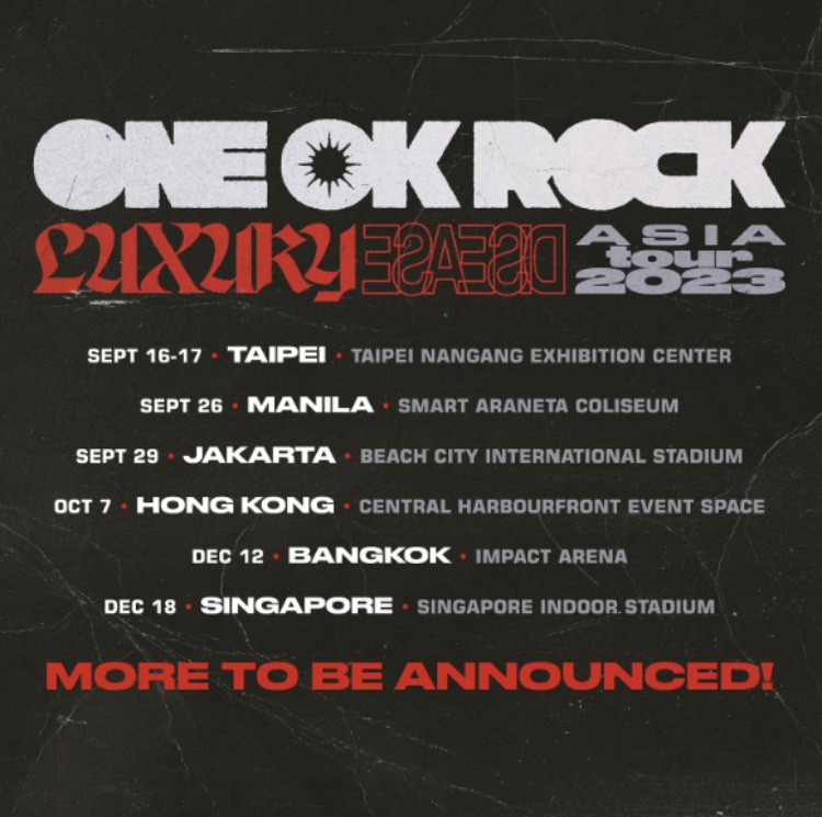 繼美國、日本、歐洲巡迴之後,日本搖滾天團ONE OK ROCK也沒有忘記等待許久的亞洲樂迷,宣布將從台北出發,緊接著馬尼拉、雅加達、香港、曼谷、新加坡等六大城市,重啟亞洲巡迴演唱會,而台灣場將會於9月16日、9月17日在南港展覽館舉行,睽違五年,終於能再次向台灣樂迷展現他們熱血沸騰的搖滾音樂。