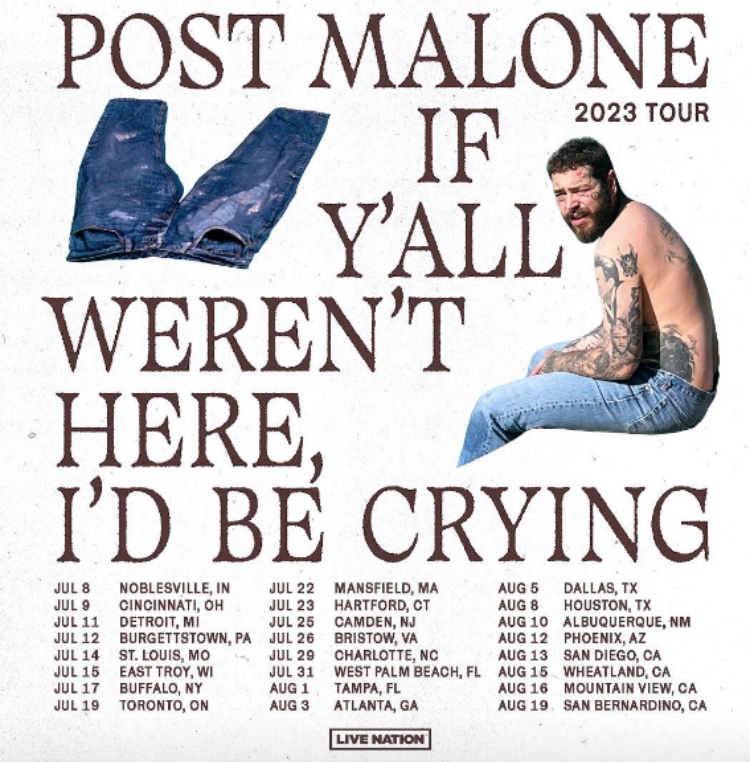 以嘻哈、搖滾和 R&B 的融合而聞名,曾8度獲《格林美音樂獎》提名的美國人氣歌手Post Malone宣布全球巡唱《If Y'All Weren't Here, I'd Be Crying World Tour》將加開亞洲站,而將於9月20日在台北南港國際展覽中心進行首次台北站的巡迴演唱會。