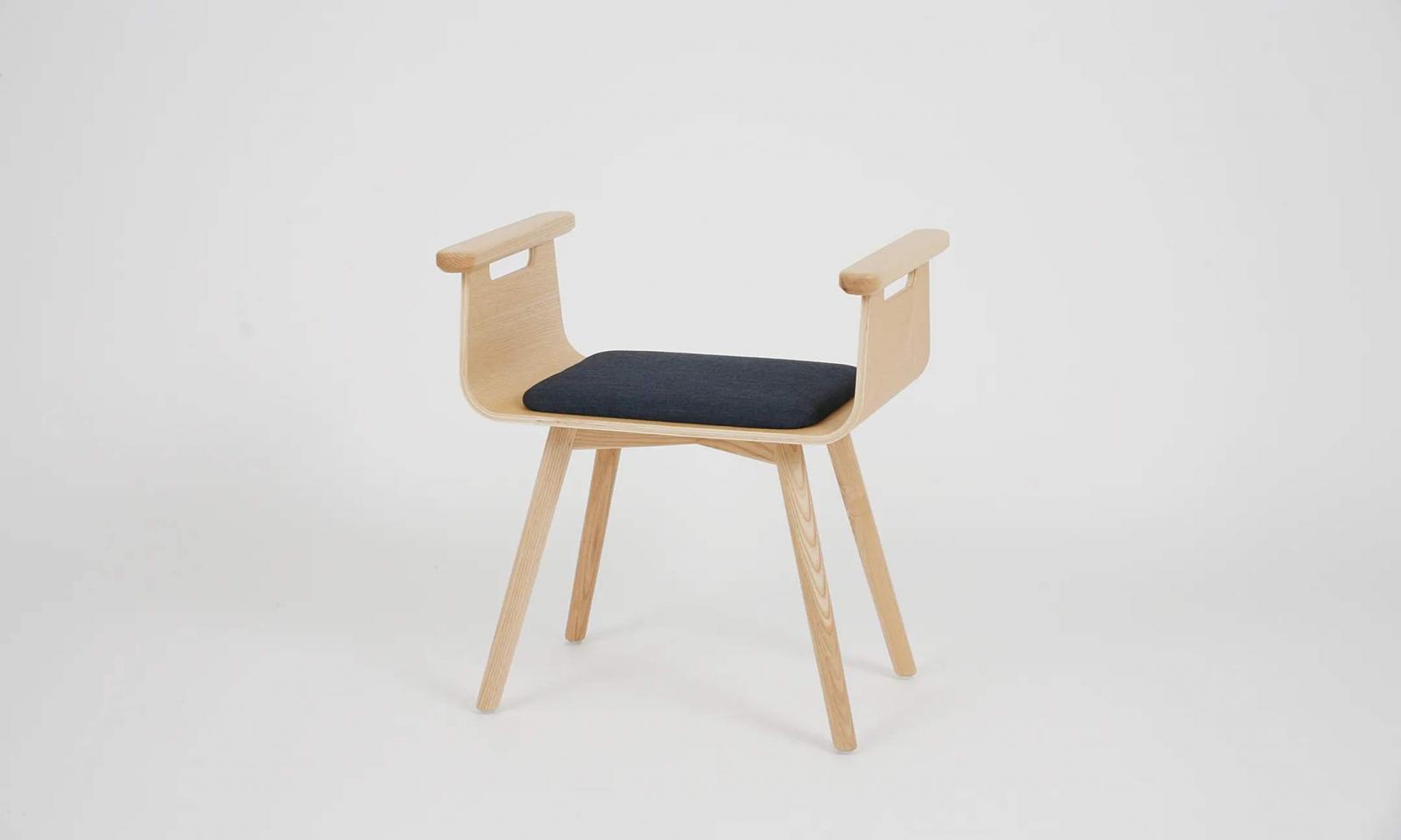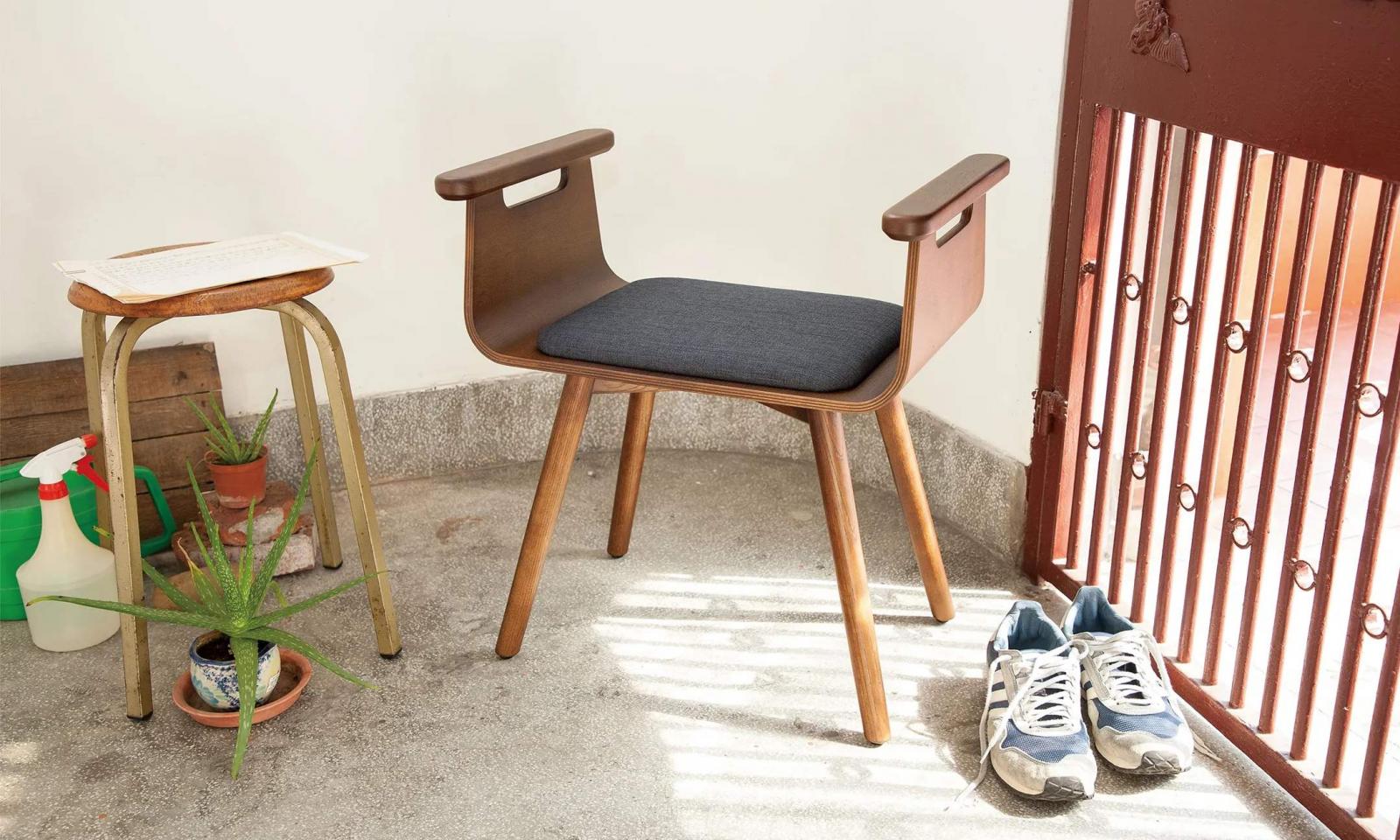 這款 Kino Stool 玄關椅的設計靈感源自「觀察の樹」兩位創辦人黑坂昌彥與庄司佳代,拜訪一位台灣退休老師家在玄關差點跌倒的經驗。寬敞的座位以及圓弧型的座椅支撐使用者的臀部,讓使用者即使背著背包,也能坐在這一張玄關椅上穿鞋。其兩旁的扶手採 R 角設計,視覺上看起來圓潤、手握則有安穩感。