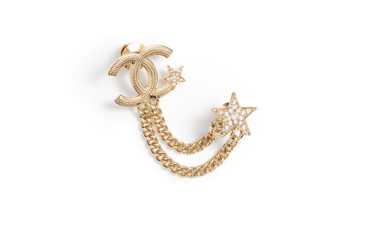 「流星」是一個香奈兒品牌DNA之中非常重要的元素,不只在珠寶系列中以此為靈感,更延伸至首飾上以星星、鏈條與雙C Logo設計而成的胸針,只要在襯衫上加上它就能畫龍點睛!(價格:NTD21,000)