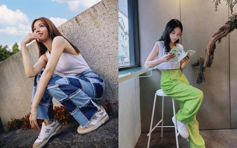 另外最近因為《請問,還有哪裡需要加強》的劇中角色,而被網友笑稱是「台灣最正洗頭妹」的宋芸樺,也在IG上示範550新色的甜辣穿搭照,其中一個look她身穿白色背心+拼接設計的牛仔褲,腳上選穿的則是卡其色中性款550、另一個造型宋芸樺則是以白色短版背心x螢光綠色寬版褲和純白色的550,完全看不出本人已經30歲!整個人還是像極了大學生,好有青春活力啊。