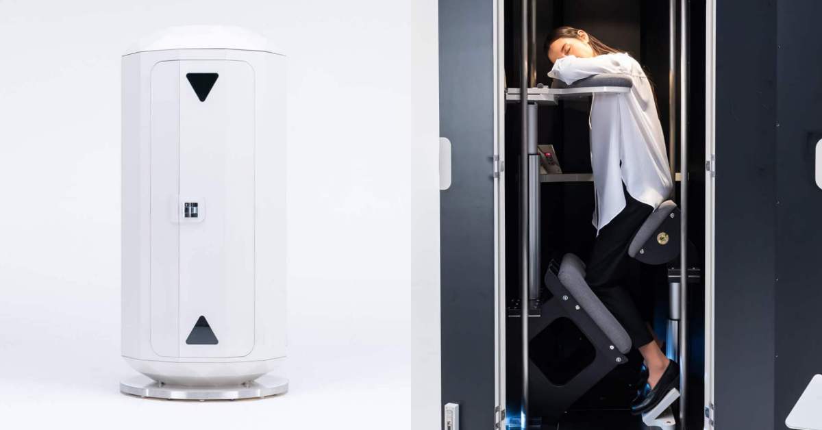 “giraffenap” 的設計靈感,正是參考長頸鹿站著睡的姿態。特別是,在競爭如此激烈、疲勞的日本職場,希望上班族能與有更好的午休品質。外觀上,像是一個小型的電話亭,而內部則有 4 個可調整高度與角度的支撐點,讓每一位使用者都能找到最契合自己的姿勢。哪怕是站著,其實一點也不費力、輕鬆入睡。