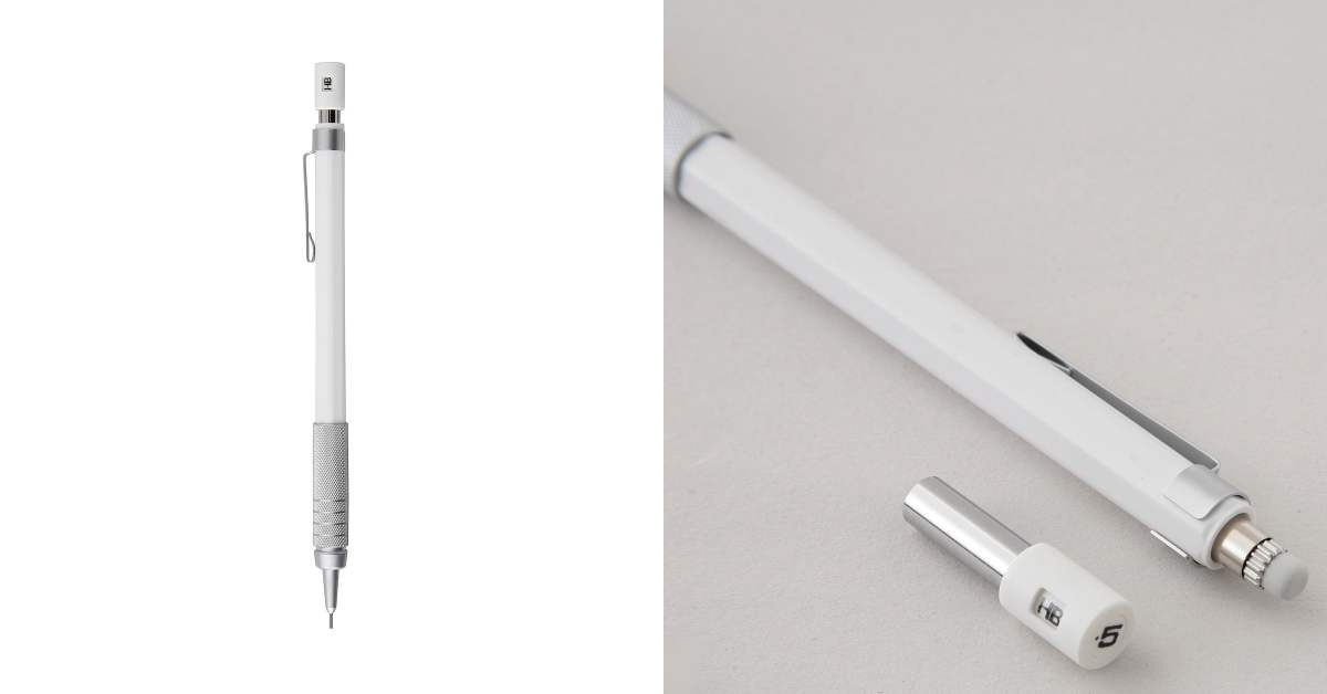 這款「低重心製圖自動筆」的筆尖較長,在使用尺規時,不會遮蔽視線,提昇畫圖的精確度,更採用「低重心」的設計以及止滑的加工,讓書寫感安定,還可透過「顯示窗」辨別筆芯的硬度。這款筆有推出兩個筆芯版本,分別是 0.3 和 0.5 mm。就算不是拿來畫畫,拿來寫字也很好寫,讓日本人給出 4.5 分。